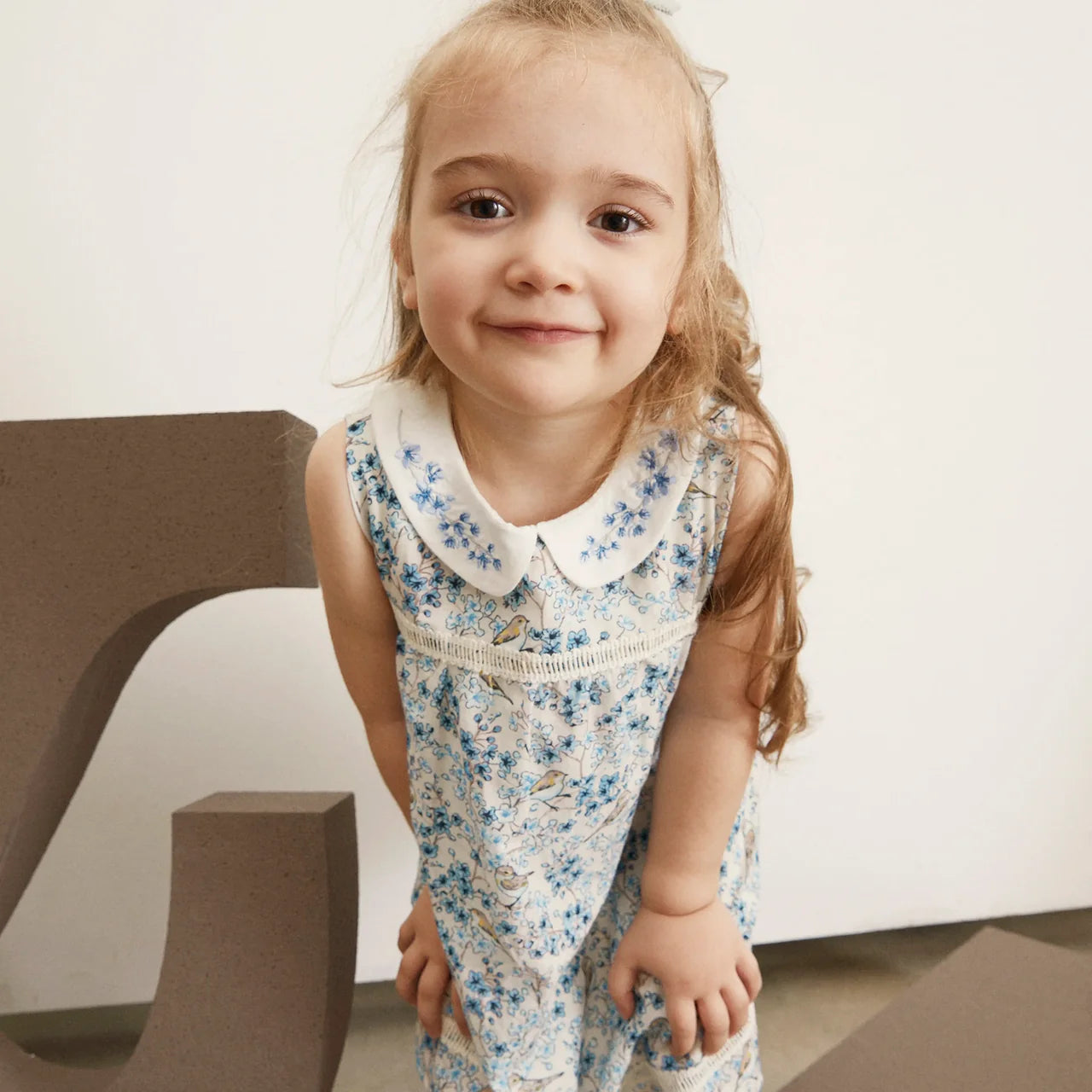 Mouwloze Blauwe Jurk met Fijne Borduursels