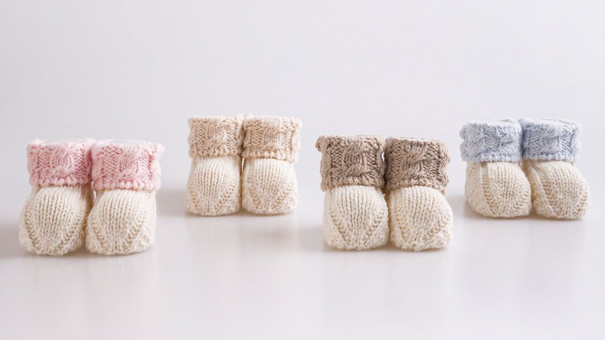 Slofjes gemaakt van zacht gebreid materiaal. Perfecte pasvorm tot 12 maanden.